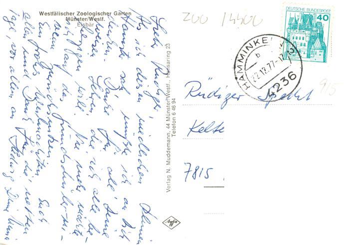 73940499 alte Postkarte Eisbaer Icebear Ours Polaire Muenster Westf. postalisch gelaufen Erhaltung siehe scans [IrynaD87] KatCode: 22540000000300