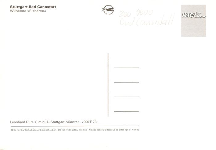 73940836 Eisbaer Icebear Ours Polaire Zoo Stuttgart Bad Cannstatt Wilhelma postalisch nicht gelaufen Erhaltung siehe scans [IrynaD87] KatCode: 22540000000300