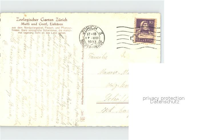 alte Postkarte Eisbaer Zoo Zuerich Muffi und Gretl postalisch gelaufen Erhaltung siehe scans