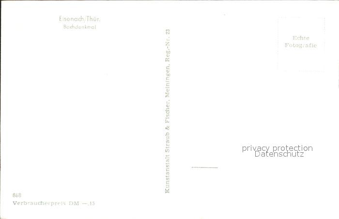 72253068 Eisenach Thueringen Bachdenkmal postalisch nicht gelaufen Erhaltung siehe scans KatCode: 11110016056000