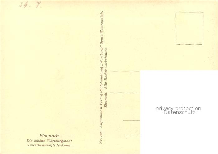 73161647 Eisenach Thueringen Burschenschaftsdenkmal postalisch nicht gelaufen Erhaltung siehe scans [WerneD78] KatCode: 11110016056000