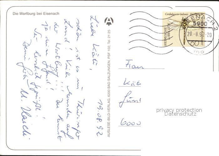 72482781 alte Postkarte Eisenach Thueringen Die Wartburg postalisch gelaufen Erhaltung siehe scans KatCode: 11110016056000