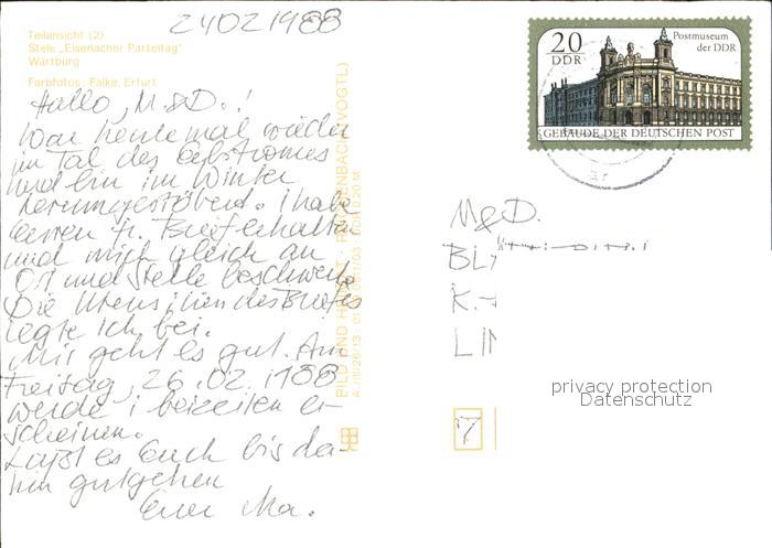 72368622 alte Postkarte Eisenach Thueringen Eisenacher Parteitag Wartburg postalisch gelaufen Erhaltung siehe scans KatCode: 11110016056000