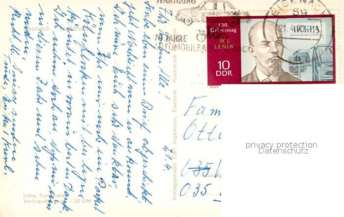 73153909 alte Postkarte Eisenach Thueringen Esplanade postalisch gelaufen Erhaltung siehe scans [LiesaD40] KatCode: 11110016056000