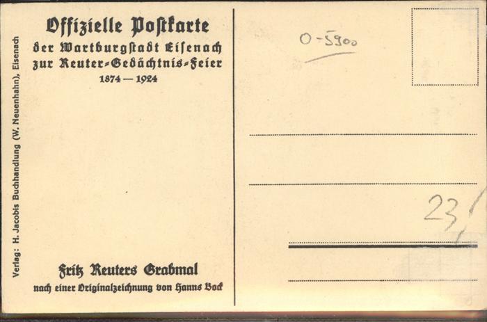 41326616 Eisenach Thueringen Fritz Reuter Grabmal Kuenstlerkarte nach einer Originalzeichnung von Hanns Bock postalisch nicht gelaufen gute Erhaltung KatCode: 11110016056000