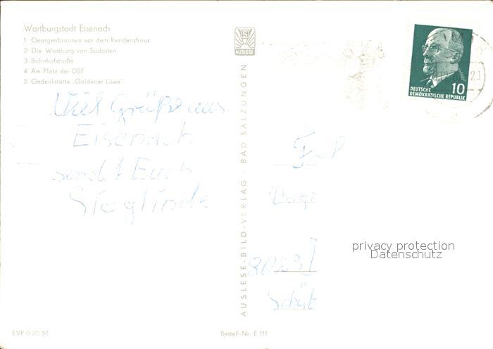 72368614 alte Postkarte Eisenach Thueringen Georgenbrunnen Residenzhaus Bahnhofstrassse Goldener Loewe postalisch gelaufen Erhaltung siehe scans KatCode: 11110016056000