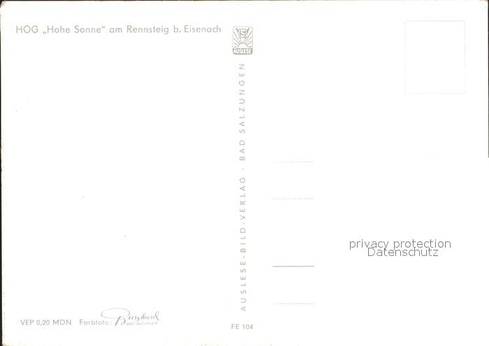 72071056 Eisenach Thueringen HOG Hohe Sonne am Rennsteig postalisch nicht gelaufen Erhaltung siehe scans KatCode: 11110016056000