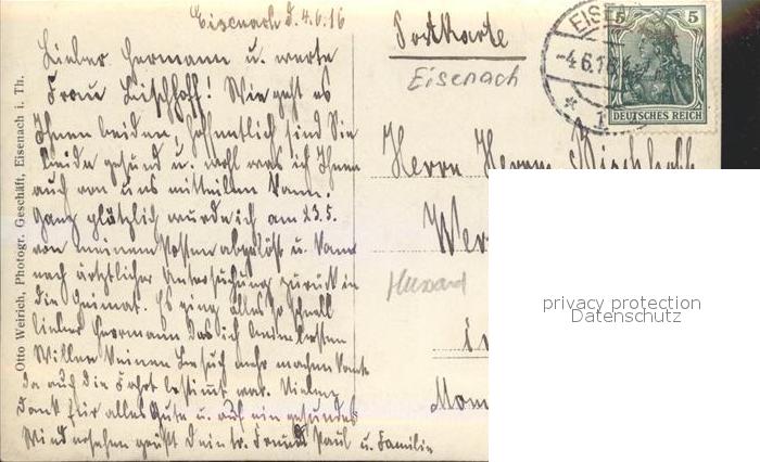 32411982 alte Postkarte Eisenach Thueringen Hussaren Rgt. WK1 postalisch gelaufen Erhaltung siehe scans KatCode: 11110016056000