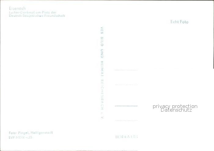72341002 Eisenach Thueringen Lutherdenkmal Platz der Deutsch Sowjetischen Freundschaft postalisch nicht gelaufen Erhaltung siehe scans KatCode: 11110016056000