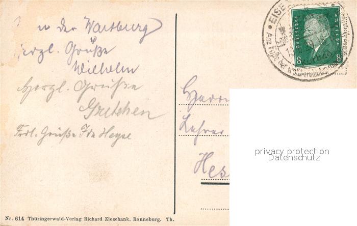 73559189 alte Postkarte Eisenach Thueringen mit Wartburg postalisch gelaufen Erhaltung siehe scans [LiesaD40] KatCode: 11110016056000