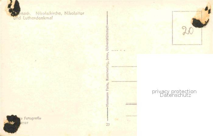 72643093 Eisenach Thueringen Nikolaikirche Nikolaitor Lutherdenkmal Statue postalisch nicht gelaufen Erhaltung siehe scans [FriedD77] KatCode: 11110016056000