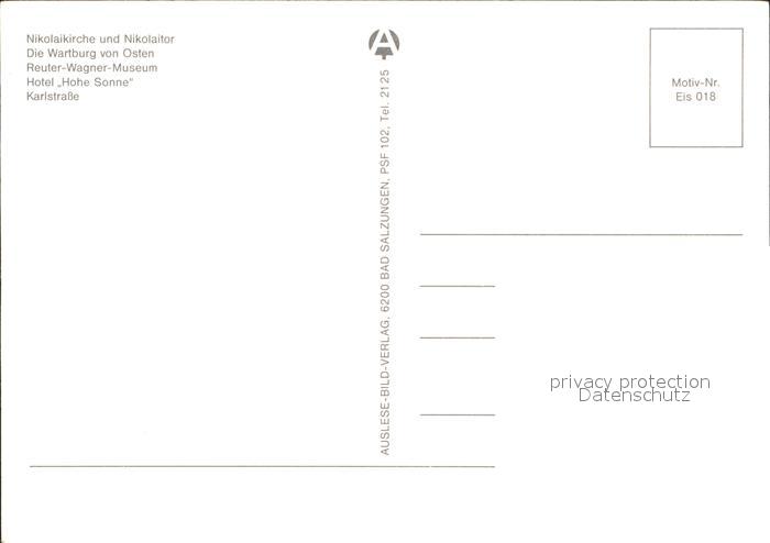 72368621 Eisenach Thueringen Nikolaikirche Nikolaitor Wartburg Reuter-Wagner-Museum Hotel Hohe Sonne postalisch nicht gelaufen Erhaltung siehe scans KatCode: 11110016056000