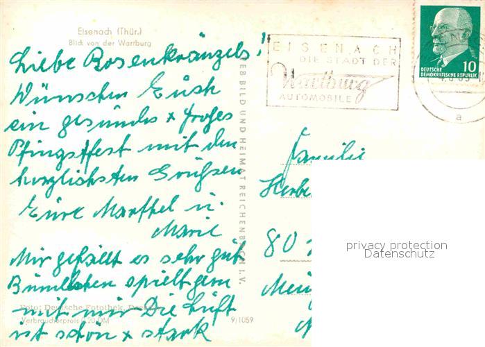 72632550 alte Postkarte Eisenach Thueringen Panorama Blick von der Wartburg postalisch gelaufen Erhaltung siehe scans [FriedD77] KatCode: 11110016056000