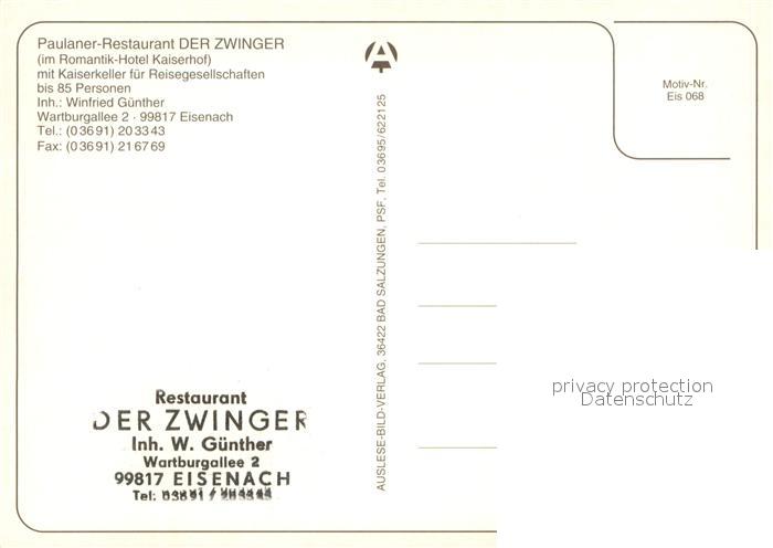 73663635 Eisenach Thueringen Paulaner Restaurant Der Zwinger postalisch nicht gelaufen Erhaltung siehe scans [FriedD77] KatCode: 11110016056000