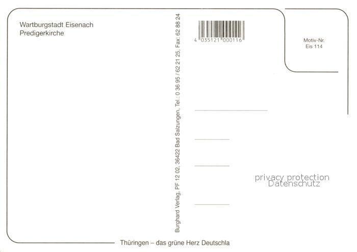 73255488 Eisenach Thueringen Predigerkirche postalisch nicht gelaufen Erhaltung siehe scans [WerneD78] KatCode: 11110016056000