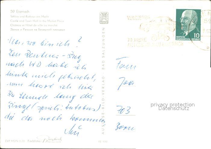 72022111 Eisenach Thueringen Schloss und Rathaus am Markt postalisch nicht gelaufen Erhaltung siehe scans KatCode: 11110016056000