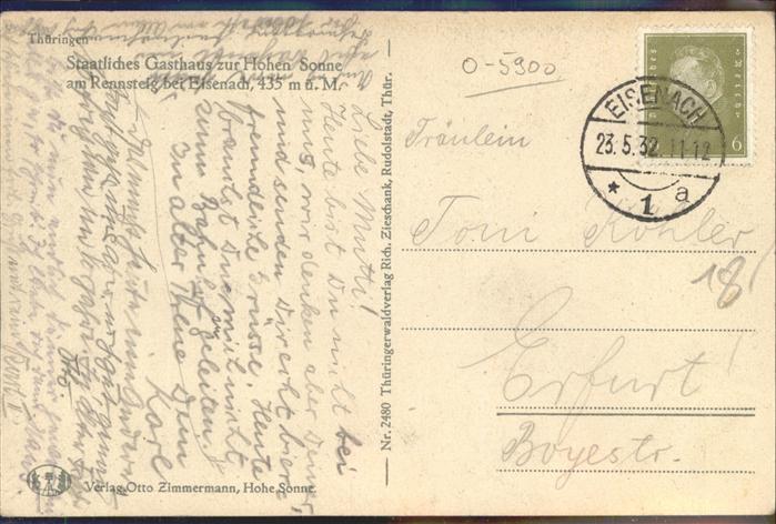 41329958 Eisenach Thueringen Staatl Gasthaus zur Hohen Sonne am Rennsteig KatCode 11110016056000