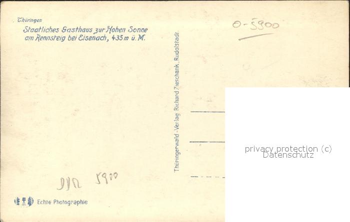 41431420 Eisenach Thueringen Staatl Gasthaus zur Hohen Sonne am Rennsteig KatCode 11110016056000