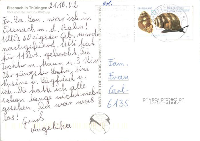 72504376 alte Postkarte Eisenach Thueringen Stadtblick mit Wartburg postalisch gelaufen Erhaltung siehe scans KatCode: 11110016056000