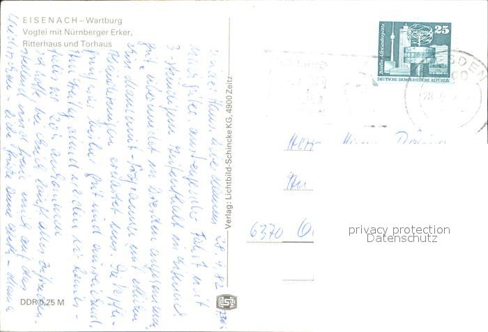 alte Postkarte Eisenach Thueringen Vogtei mit Nuernberger Erker Ritterhaus und Torhaus postalisch gelaufen Erhaltung siehe scans
