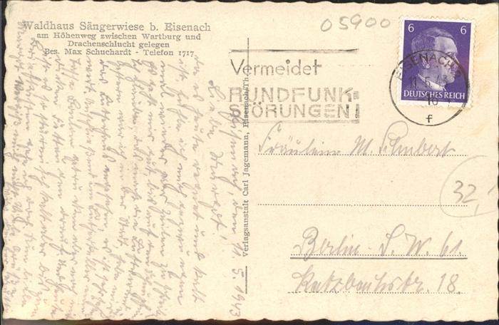41326963 alte Postkarte Eisenach Thueringen Waldhaus Saengerwiese postalisch gelaufen gute Erhaltung KatCode: 11110016056000