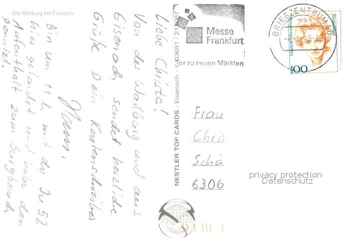 73182441 alte Postkarte Eisenach Thueringen Wartburg postalisch gelaufen Erhaltung siehe scans [FriedD77] KatCode: 11110016056000