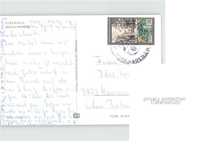 72391082 alte Postkarte Eisenach Thueringen Wartburg postalisch gelaufen Erhaltung siehe scans KatCode: 11110016056000