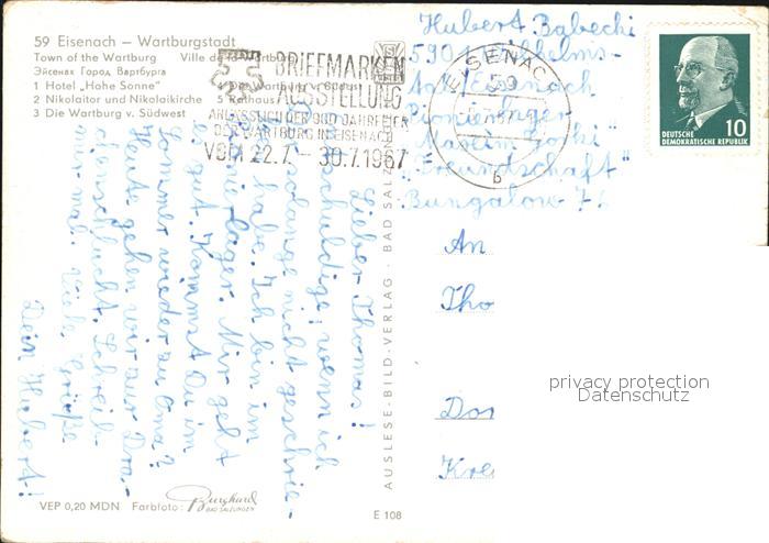 72583874 alte Postkarte Eisenach Thueringen Wartburg Hotel-Hohe-Sonne Nikolaitor postalisch gelaufen Erhaltung siehe scans [LiesaD40] KatCode: 11110016056000