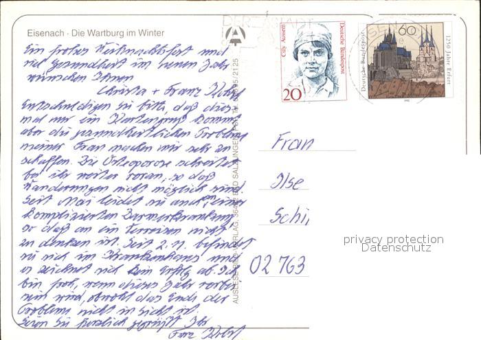 72336992 alte Postkarte Eisenach Thueringen Wartburg im Winter postalisch gelaufen Erhaltung siehe scans KatCode: 11110016056000