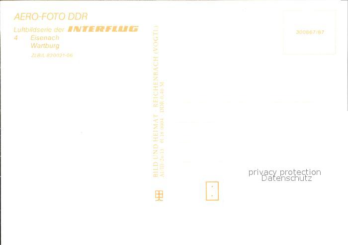 72261037 Eisenach Thueringen Wartburg Luftbildserie Interflug postalisch nicht gelaufen Erhaltung siehe scans KatCode: 11110016056000