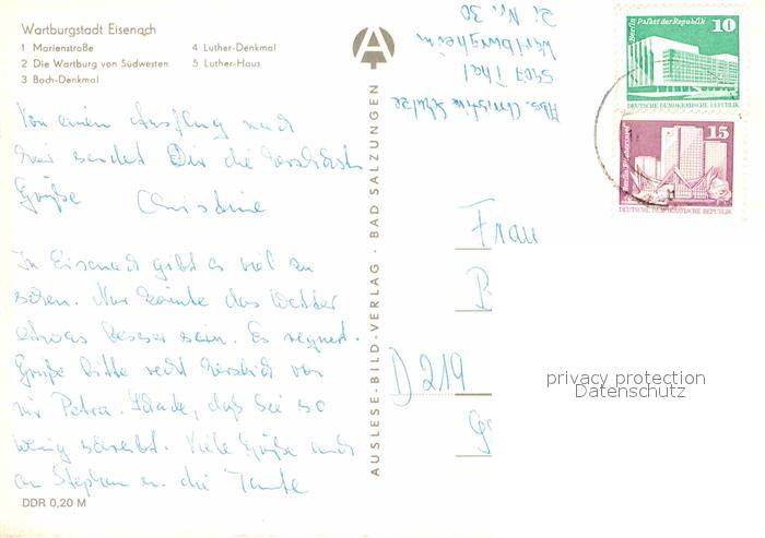 72814071 alte Postkarte Eisenach Thueringen Wartburg Marienstrasse Bach-Denkmal postalisch gelaufen Erhaltung siehe scans [LiesaD40] KatCode: 11110016056000