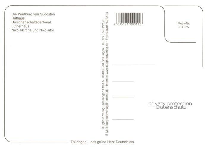 73217196 Eisenach Thueringen Wartburg Rathaus Burschenschaftsdenkmal Lutherhaus Nikolaikirche Nikolaitor Chronik postalisch nicht gelaufen Erhaltung siehe scans [FriedD77] KatCode: 11110016056000