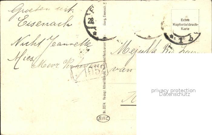 72470400 alte Postkarte Eisenach Thueringen Wartburg von Sueden postalisch gelaufen Erhaltung siehe scans KatCode: 11110016056000