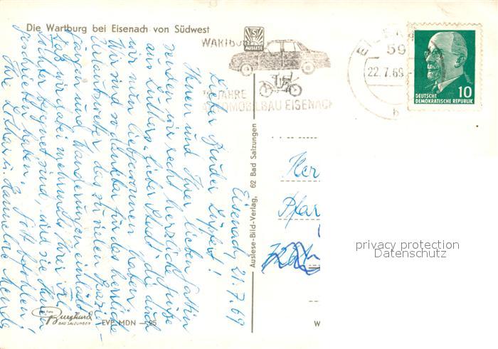 73297415 alte Postkarte Eisenach Thueringen Wartburg postalisch gelaufen Erhaltung siehe scans [FriedD77] KatCode: 11110016056000