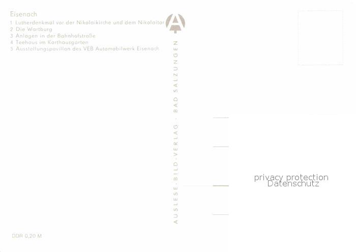 72631867 Eisenach Thueringen Wartburgstadt Lutherdenkmal postalisch nicht gelaufen Erhaltung siehe scans [LiesaD40] KatCode: 11110016056000