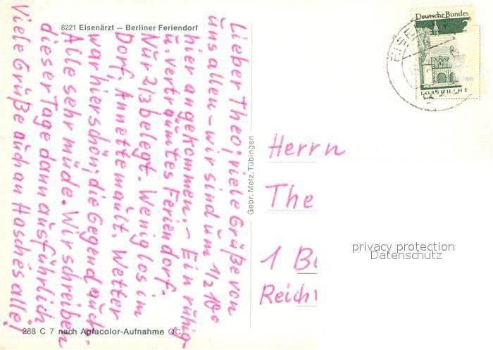 72937188 alte Postkarte Eisenaerzt Fliegeraufnahme Berliner Feriendorf postalisch gelaufen Erhaltung siehe scans [LiesaD40] KatCode: 11110009189145
