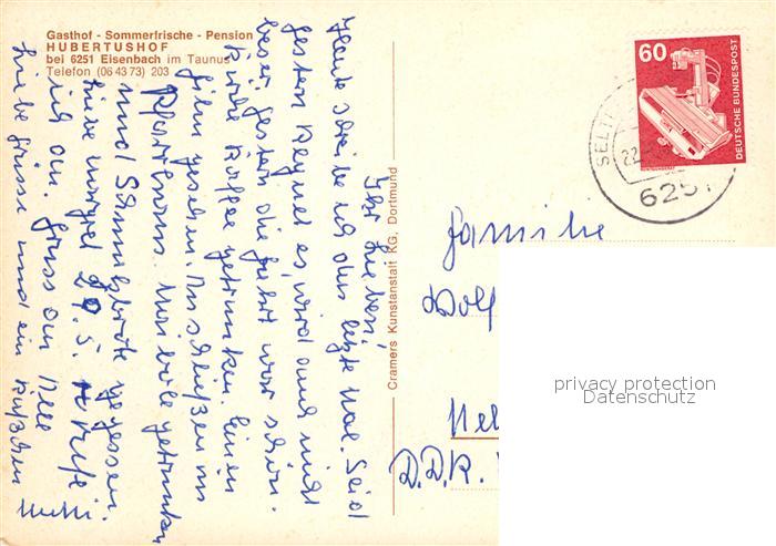72987506 alte Postkarte Eisenbach Limburg Gasthaus Hubertushof postalisch gelaufen Erhaltung siehe scans [LiesaD40] KatCode: 11110006533014