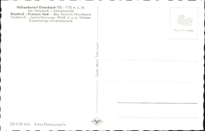 40805420 Eisenbach Neustadt Schwarzwald Gasthof Pension Bad postalisch nicht gelaufen Alte Ansichtskarte Postkarte Katcode