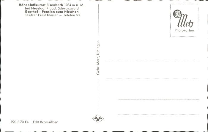 40805421 Eisenbach Neustadt Schwarzwald Gasthof Pension zum Hirschen postalisch nicht gelaufen Alte Ansichtskarte Postkarte Katcode