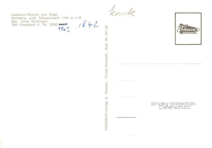 73109191 Eisenbach Schwarzwald Gasthaus Pension zum Engel postalisch nicht gelaufen Erhaltung siehe scans [KathaD81] KatCode: 11110008315031