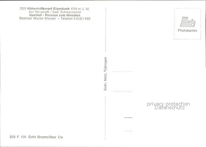 41759855 Eisenbach Schwarzwald Gasthaus Pension zum Hirschen postalisch nicht gelaufen KatCode: 11110008315031