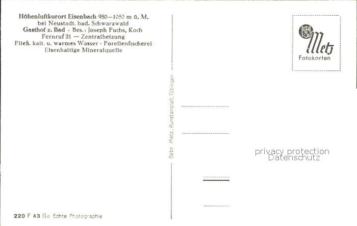 41759598 Eisenbach Schwarzwald Gasthaus zum Bad Winter postalisch nicht gelaufen Erhaltung siehe scans KatCode: 11110008315031