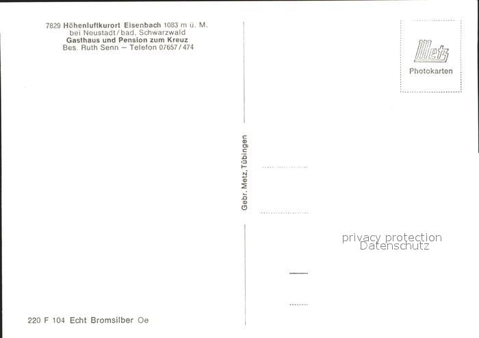 41759854 Eisenbach Schwarzwald Gasthaus zum Kreuz alpen postalisch nicht gelaufen Erhaltung siehe scans KatCode: 11110008315031