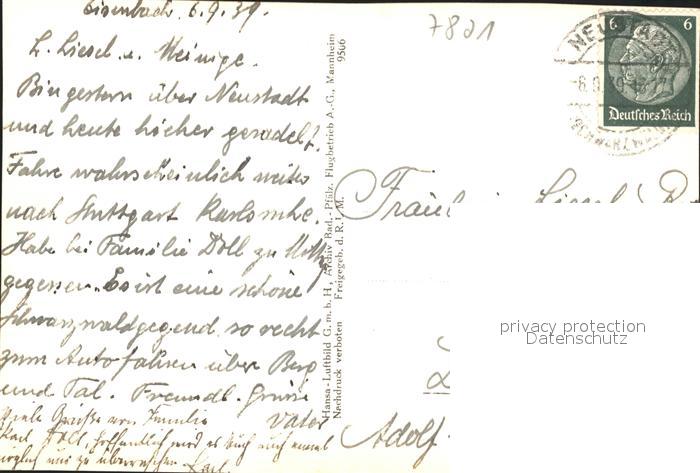31706152 alte Postkarte Eisenbach Schwarzwald Hoehenluftkurort Fliegeraufnahme postalisch gelaufen Erhaltung siehe scans KatCode: 11110008315031