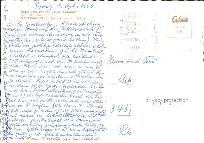 72038058 alte Postkarte Eisenbach Schwarzwald Tages Cafe Pension Haus Charlott postalisch gelaufen Erhaltung siehe scans KatCode: 11110008315031