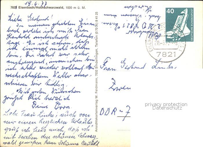 72533922 alte Postkarte Eisenbach Schwarzwald Teilansicht postalisch gelaufen Erhaltung siehe scans [WerneD78 kt116box] KatCode: 11110008315031