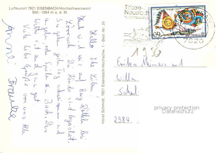 72887263 alte Postkarte Eisenbach Schwarzwald postalisch gelaufen Erhaltung siehe scans [LiesaD40] KatCode: 11110008315031