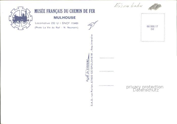 Eisenbahn 232 U I SNCF 1949 Musee Mulhouse postalisch nicht gelaufen Erhaltung siehe scans
