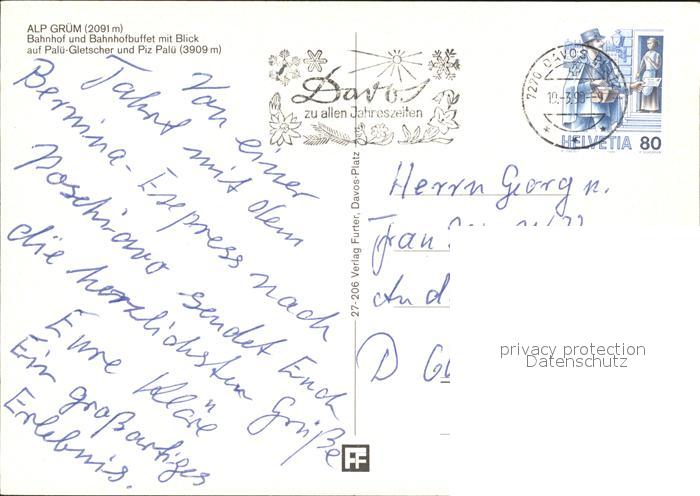 alte Postkarte Eisenbahn Alp Gruem Bahnhof Bahnhofbuffet Palue-Gletscher postalisch gelaufen Erhaltung siehe scans