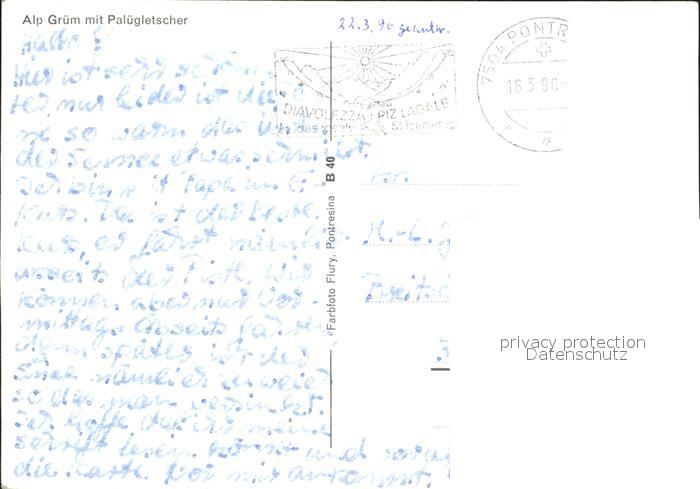 alte Postkarte Eisenbahn Alp Gruem Paluegletscher postalisch gelaufen Erhaltung siehe scans